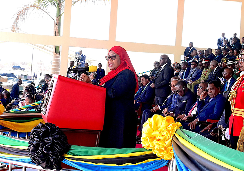 Habari ya asubuhi. Nianze kwa kumshukuru sana Mwenyezi Mungu kwa kuturuzuku uhai na kutuwezesha kushiriki sherehe hizi za kihistoria kwa Taifa letu. Pili niwashukuru Watanzania wote kwa imani yao kwa Chama cha Mapinduzi, na kwa mapenzi makubwa, na kutupa mimi na Makamu wa Rais fursa hii adhimu ya kuwatumikia.